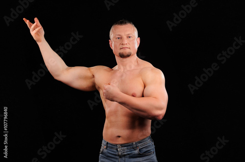 Fototapeta premium Muscular male posing on black background