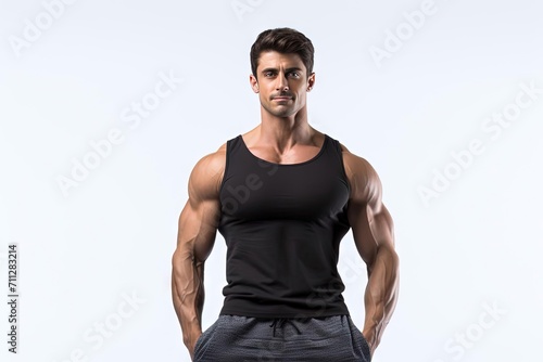 Fototapeta premium Muscular Man Black Tank Top Posing - Fitness, Full Body Photo