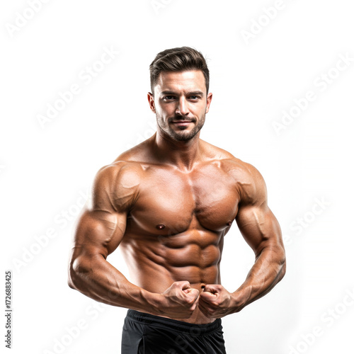 © Ludmila, Fototapeta premium Muscular man flexing his biceps in front on a white background
