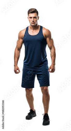 Fototapeta premium Muscular Man in Athletic Wear Isolated on a Transparent Background Ideal for...