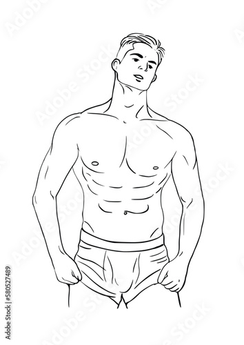 © praniti, Fototapeta premium Muscular man in swimming trunks illustration, isolated on white background