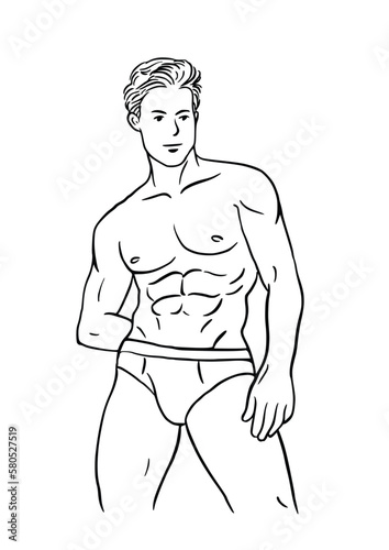 © praniti, Fototapeta premium Muscular man in swimming trunks illustration, isolated on white background