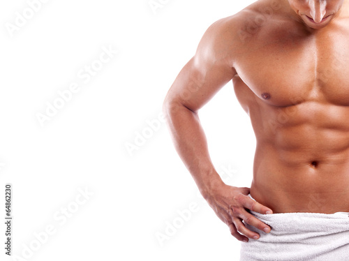 © cristovao31, Fototapeta premium Muscular man in towel, isolated on white background
