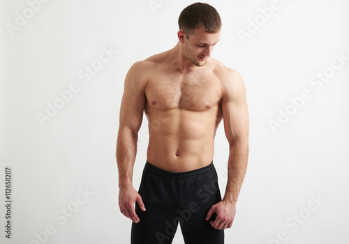 © ArtFamily, Obraz premium Muscular man over white background is looking down