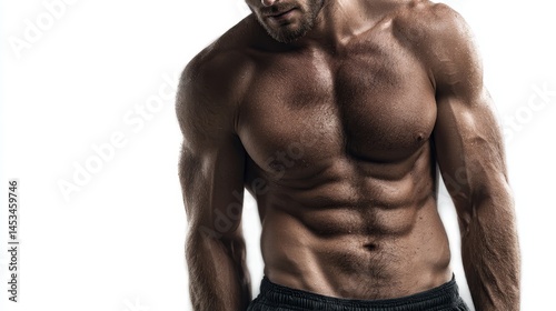 © Fluke, Fototapeta premium Muscular Man Posing Confidently Against White Background
