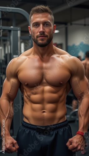 Fototapeta premium Muscular man posing confidently in a gym setting