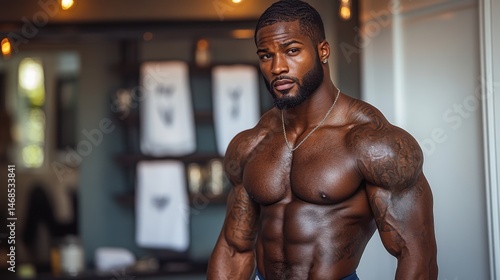 Fototapeta premium Muscular Man Posing Confidently in a Modern Gym Environment