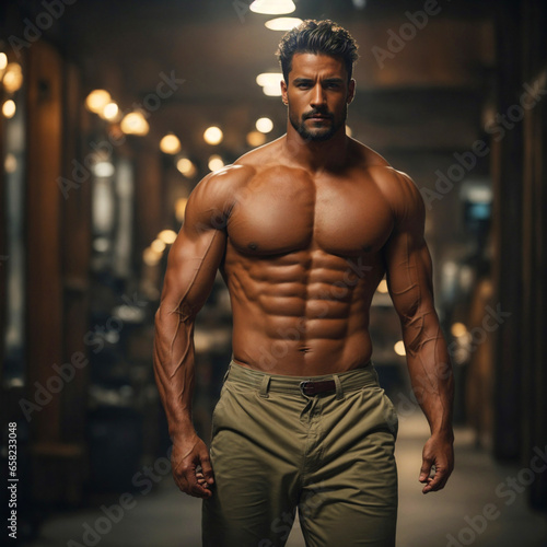 Fototapeta premium Muscular man, shirtless with pants