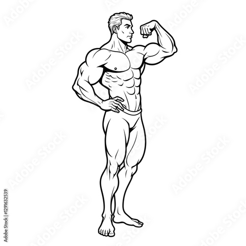 © ABDULAWAL, Fototapeta premium Muscular man showing his arm vector outline illustration