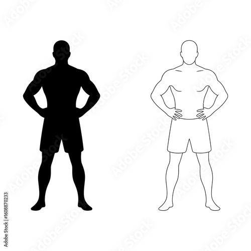 © marufaali2023, Fototapeta premium Muscular Man Silhouette Outline Vector Icon