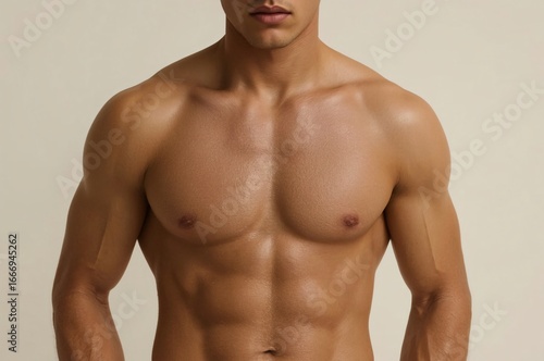 Fototapeta premium Muscular man torso, studio shot, neutral background, fitness advertising
