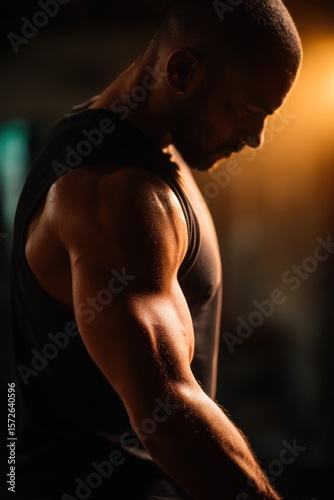 © setiadio, Fototapeta premium Muscular mans arm in a gym