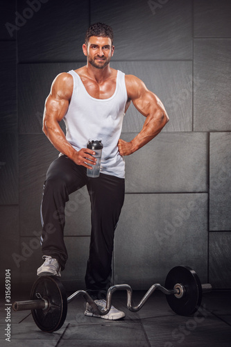 Obraz premium Muscular Men, Bodybuilder Lifting Weights. Studio Shot