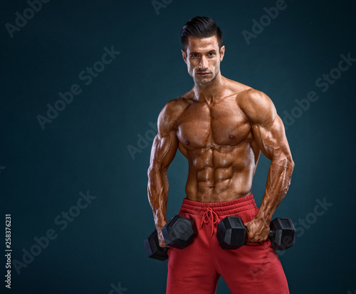 © mrbigphoto, Fototapeta premium Muscular Men Exercise With Weights