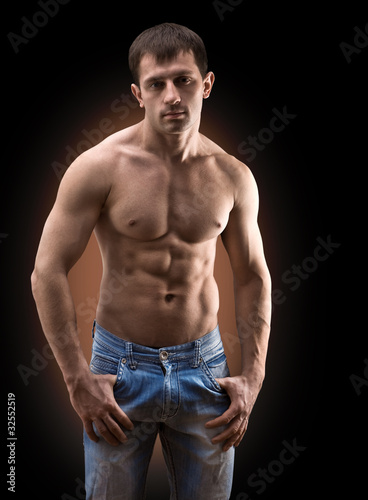 © mihalec, Fototapeta premium muscular men in blue jeans
