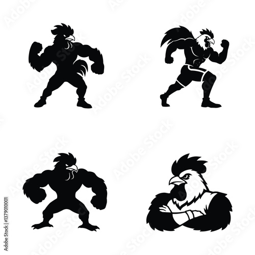 © Mst Santa Moni, Fototapeta premium Muscular Rooster Silhouettes in Fighting Poses.
