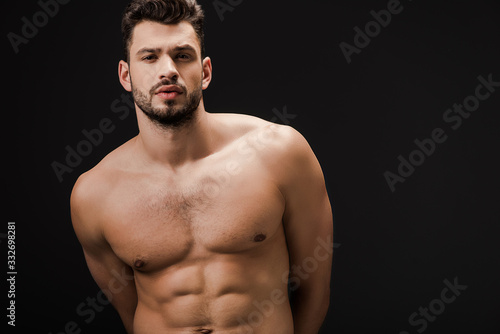 Fototapeta premium muscular sexy naked man isolated on black