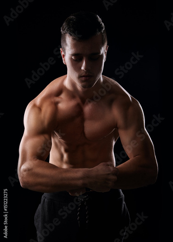 Fototapeta premium Muscular shirtless man showing his muscular arms