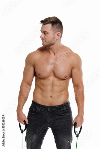 Fototapeta premium Muscular super high level handsome man posing in studio isolated on white...