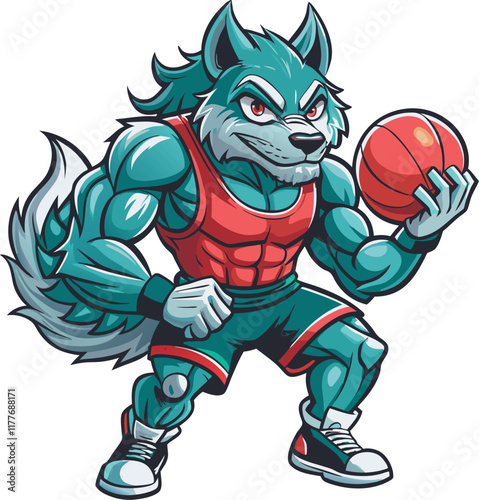 Fototapeta premium Muscular Wolf Playing Basketball Vector