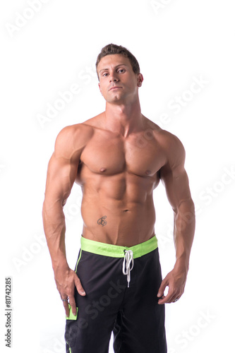 Fototapeta premium Muscular young bodybuilder in relaxed pose. Isolated