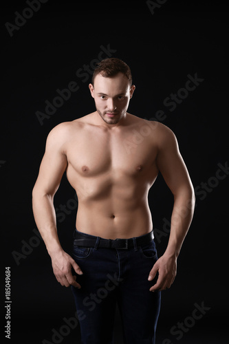 Fototapeta premium Muscular young bodybuilder on dark background