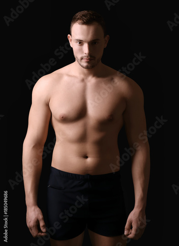 Fototapeta premium Muscular young bodybuilder on dark background