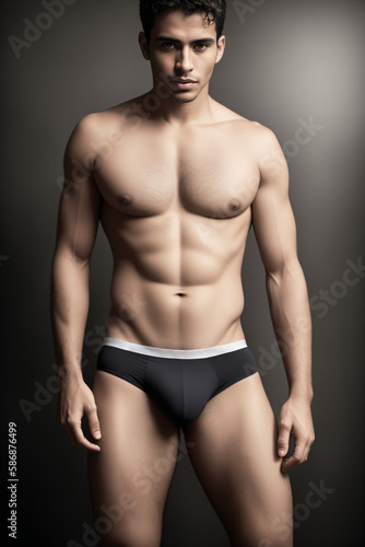 Fototapeta premium Muscular young man in a black underwear is posing for a photo.