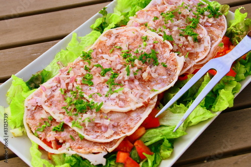 © Patryssia, Fototapeta premium museau,fromage de tête de porc en salade de crudités