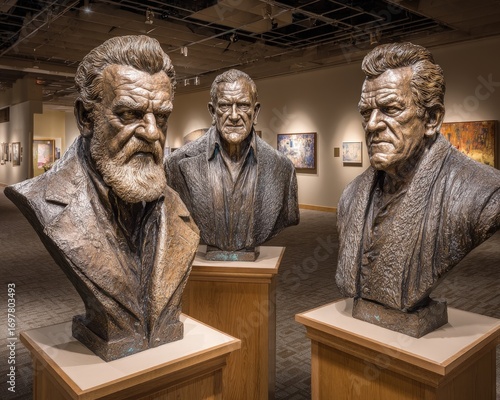 © HanCreative, Fototapeta premium Museum Exhibit Of Three Bronze Bust Sculptures