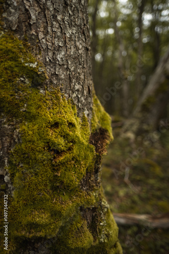 © Emanuel Silveira, Obraz premium Musgo en bosque en patagonia argentina