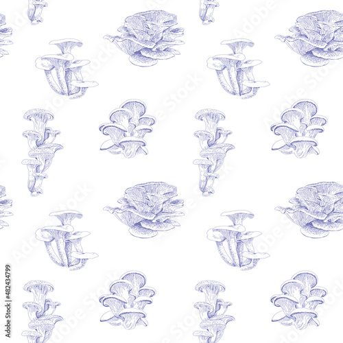 Fototapeta premium Mushroom hand drawn seamless pattern. Isolated Sketch drawing very peri line...