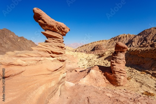 © Aladin, Fototapeta premium mushroom shaped stone in a desert near Amraam pillars in Israel