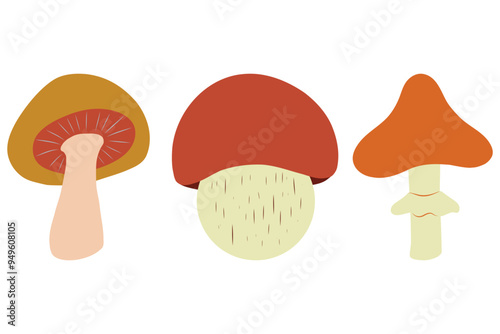 © VasilisaStArt, Fototapeta premium Mushrooms Clipart, Set of Mushrooms, Mushroom illustrations, Vector