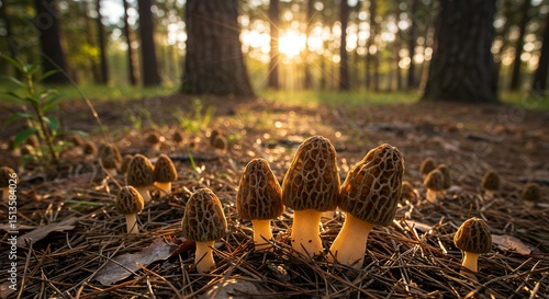 © Aufa, Obraz premium Mushrooms in Forest Sunlight