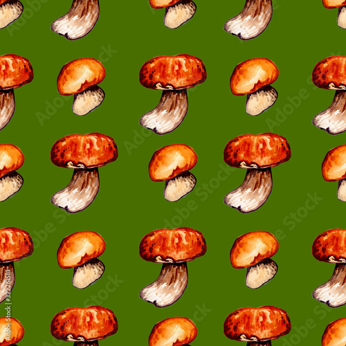 © Olena, Obraz premium mushrooms seamless pattern green background