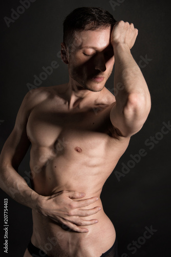 © vladorlov, Fototapeta premium Music and night club. Sexy guy dancing.