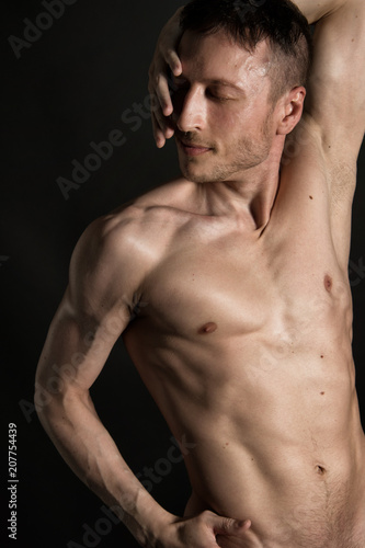 © vladorlov, Fototapeta premium Music and night club. Sexy guy dancing.