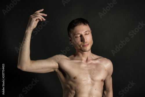 © vladorlov, Fototapeta premium Music and night club. Sexy guy dancing.