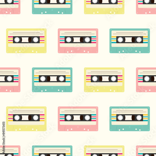 © DELYRICA, Fototapeta premium Music cassettes retro seamless pattern 90s style