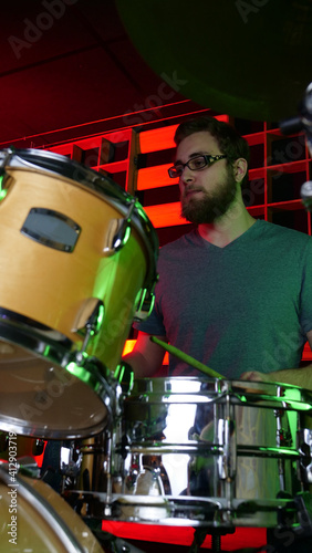 © Dalay, Fototapeta premium music group rehearsing, testing vocals and mastering in a professional recording studio