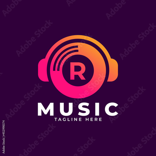 Fototapeta premium Music Logo Icon. Initial Letter R Music Logo Design Template Element.