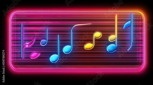 © Fathor, Obraz premium Music melody neon realistic vector desgin for musical apps and websites background,generative ai