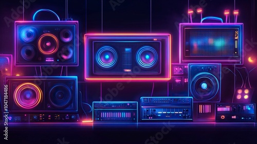 Fototapeta premium Music melody neon realistic vector desgin for musical apps and websites background,generative ai