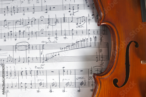 © Сергей Лабутин, Fototapeta premium Music notes and violin on table