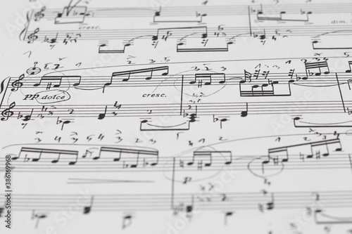 Fototapeta premium music notes background. Music sheet background, side view