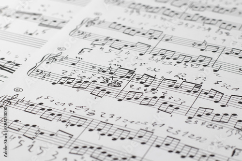 Obraz premium music notes background. Music sheet background, side view