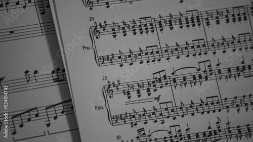 © mikus, Obraz premium Music notes on a sheet music. Notes with playing octaves