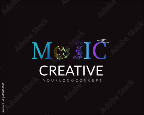 Naklejka premium Music player logo element. Logo template electronic music, equalizer, store,...