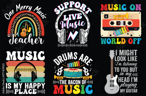 Fototapeta premium Music Retro Vintage Bundle t-shirt design.